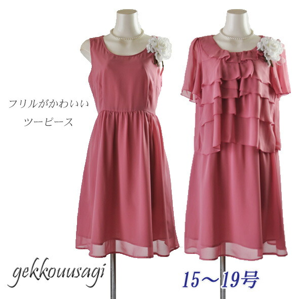 15号/17号/19号 大きいサイズ フリルティアードブラウス&ワンピース・ピンク シフォン素材ツーピース カラーフォーマル オケージョン・お呼ばれワンピコーディネートにも 151(AM1D)