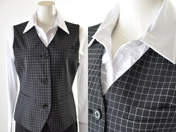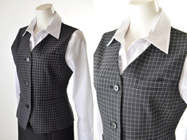 【サイズ限定特価】17号/グレー 大きいサイズ ベスト単品 制服 事務服 仕事着 オフィス 機能性抜群ベスト事務用制服 OL【グレー格子柄/濃紺格子柄】 903/959 (BL2F1Y1)AE75/1162959