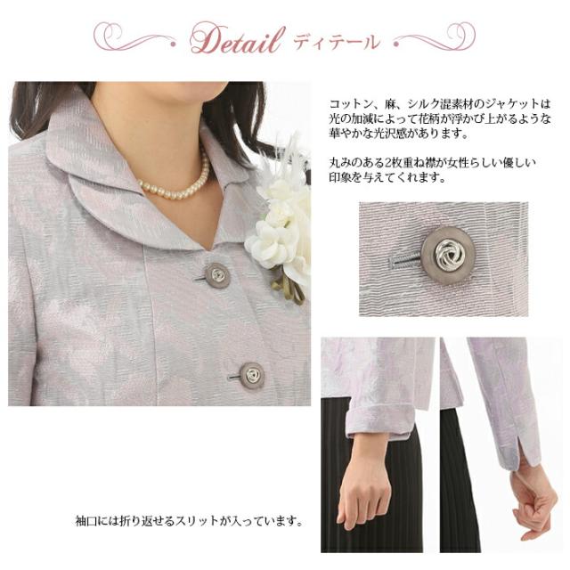 ハレの日 セットアップ レディース セレモニースーツ お宮参り 結婚式 卒業式 入学式 ママスーツ 日本製素材 桐生織 シルク混 花柄 ミセス 母 母親 ママ 祖母 叔母 孫 姪 顔合わせ 二次会 食事会 披露宴 素敵 おしゃれ 着やせ フォーマル ドレス スーツ 服装 衣装 (au2f4)