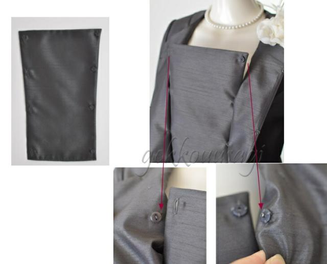 胸当てはボタンで取り外しできますので、いろいろな着こなしがお楽しみいただけます。肩パット入り。