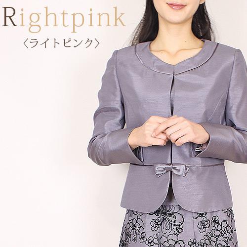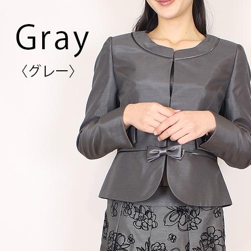 ノーカラーペプラム切替ジャケットリボン付の色は、グレー、ライトピンク、ネイビー、ブラックの4色。