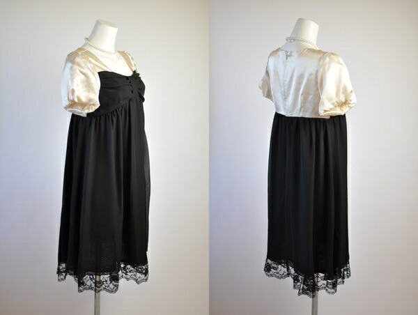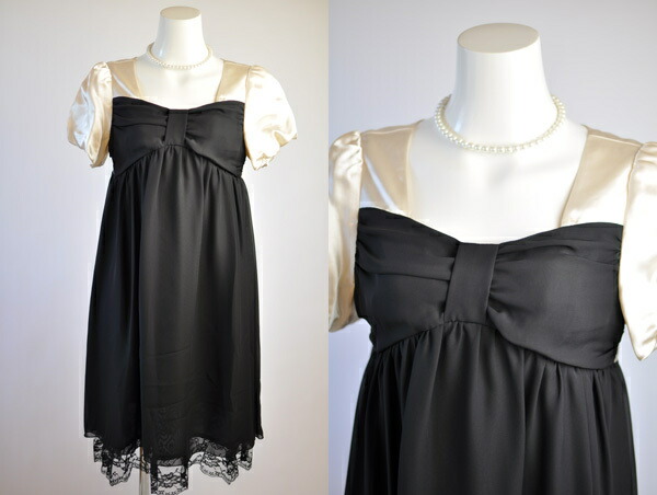 上身頃は光沢感のある素材、下身頃はシフォン素材。