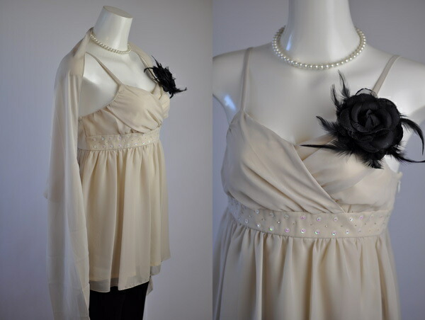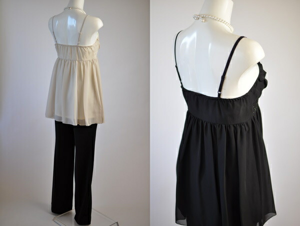 キャミソールは胸下切替部分スパンコール付き。