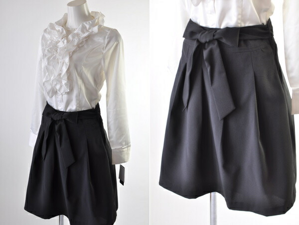 1つボタンブラック・スカートはウエストリボン付きの多用途に使え