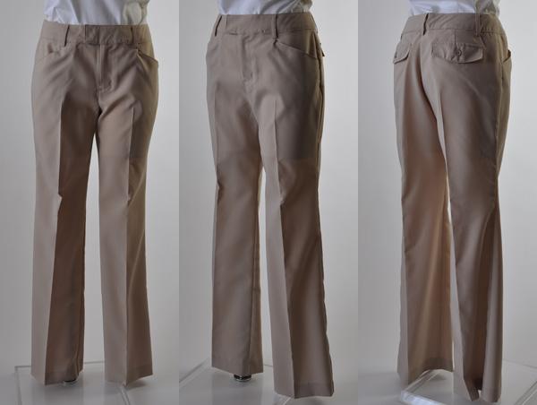 パンツは両脇ポケット付き、後ろ左右は飾りポケット。