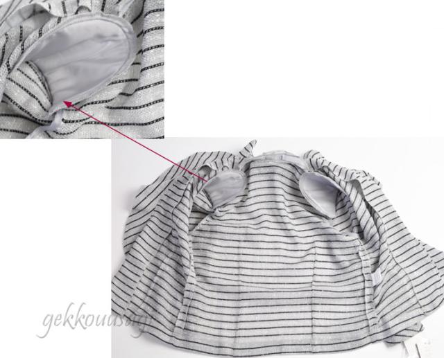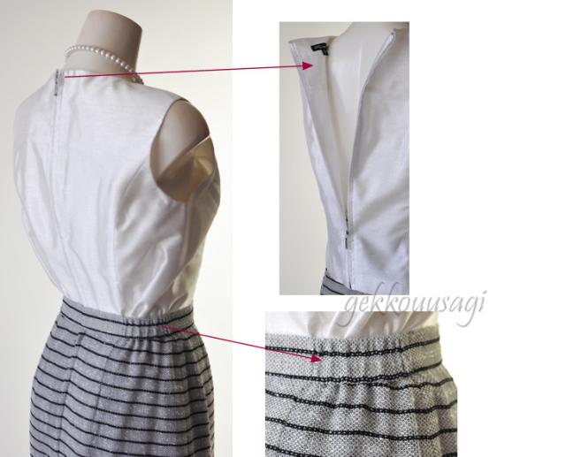 後ろファスナー、2つスナップボタン留め。