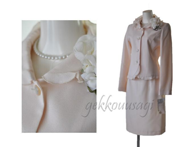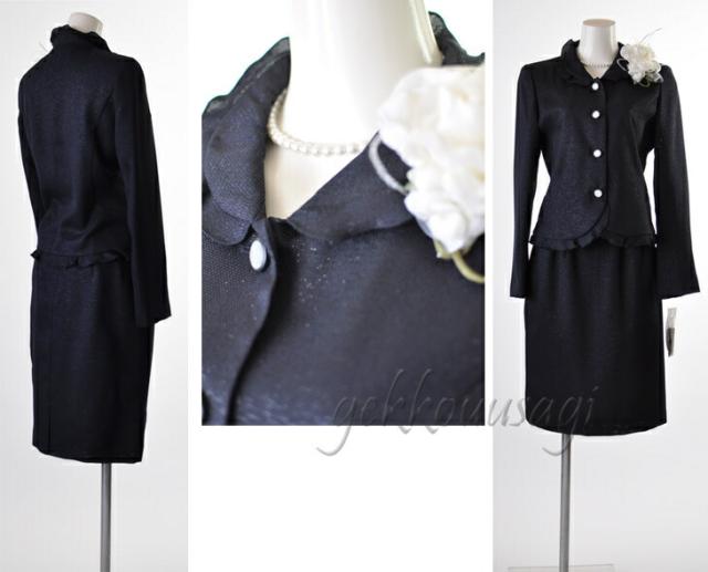 9号/11号/13号 フリルがかわいらしいセレブレイトスーツ【濃紺・ベージュ】 裏地背抜きペプラムジャケット 卒業式 入学式 七五三 結婚式 発表会 面接 ママスーツ 母親スーツ 006(SBL3f8)