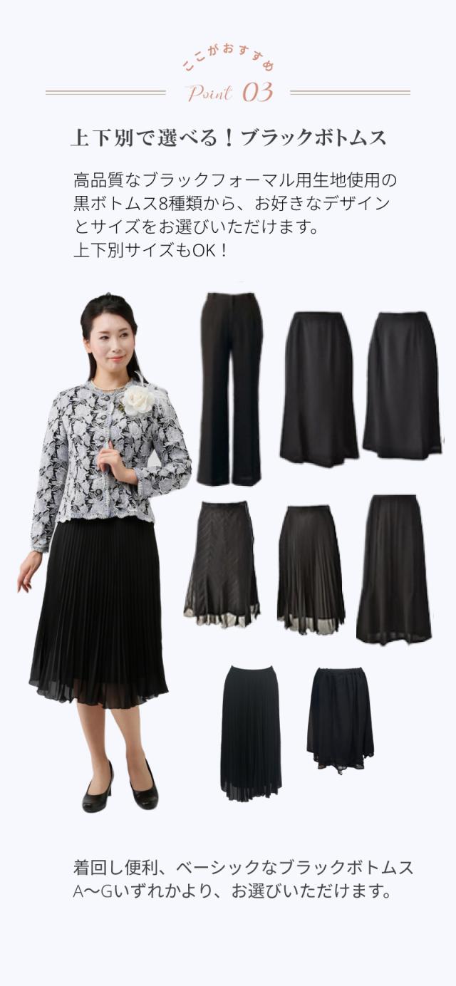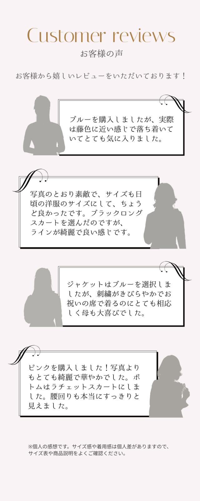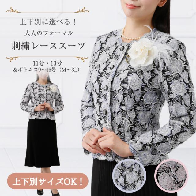 9号、11号、13号、15号サイズのジャケットと8種類のお好きなデザインとサイズのボトムスが選べるセットアップスーツです。