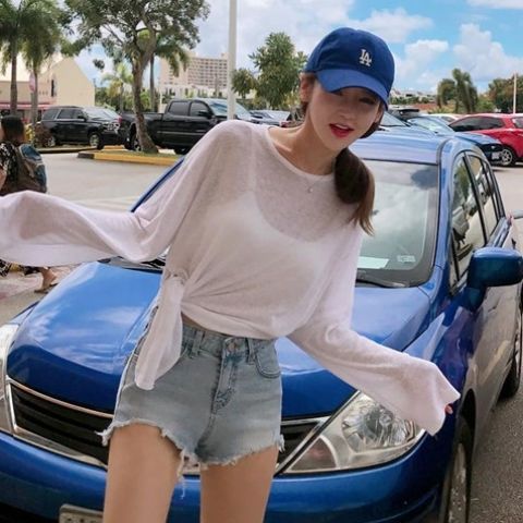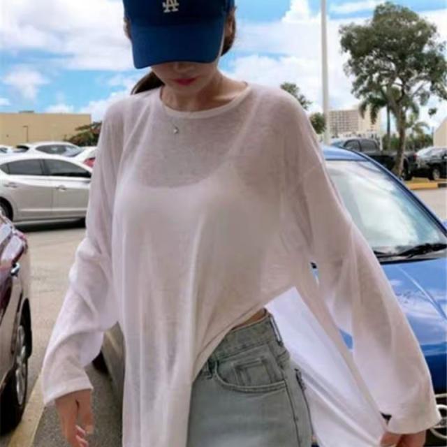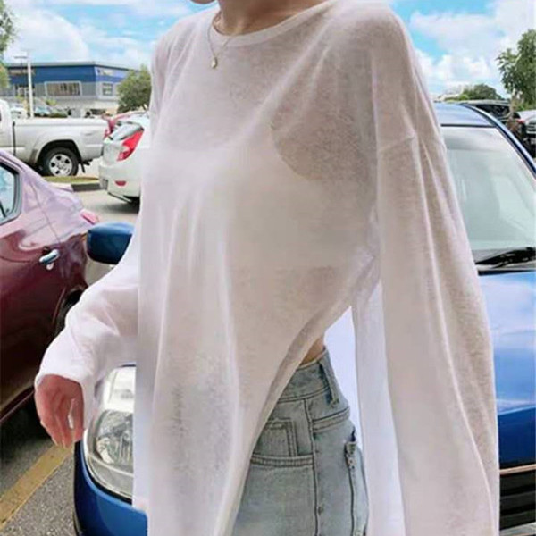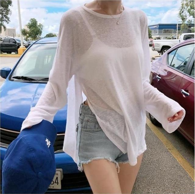 シアートップス 接触冷感 レディース 長袖 スリット入り 重ね着 インナー 透け感 レイヤード 紫外線対策 薄手 きれいめ 日焼け止め 水着 水陸両用 ゆったり
