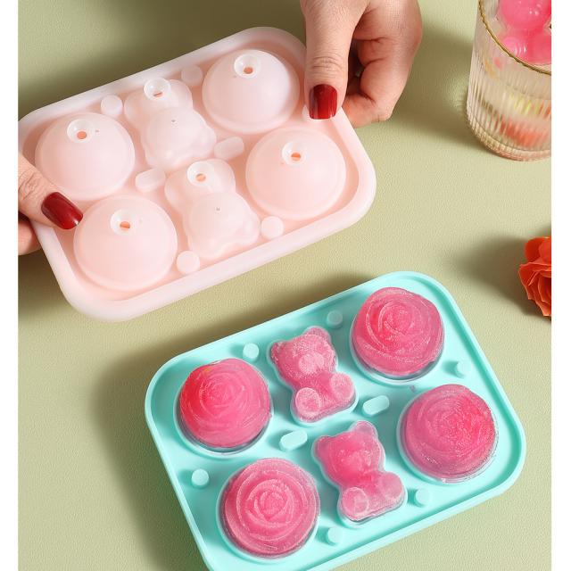 シリコンモールド 製氷機 おしゃれ 製氷皿 製氷器 キャラクター お菓子作り おもしろ ギフト かわいい アイスメーカー カフェ くま バラ ピンク オレンジ ブルー