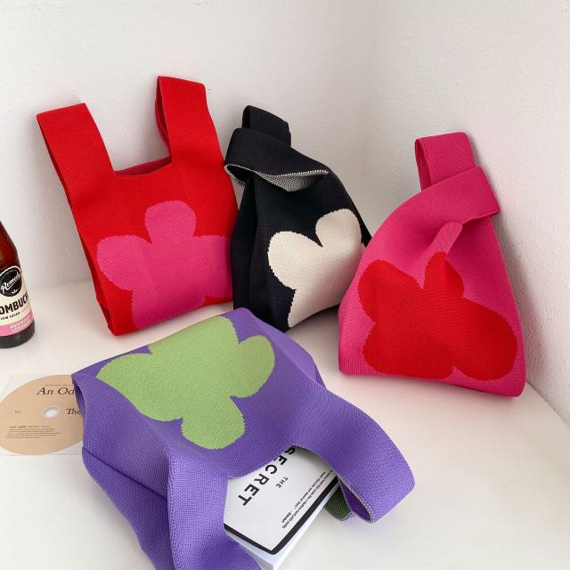サマーニット ミニトートバッグ トートバッグ エコバッグ ニットバッグ 編みバッグ 花柄 送料無料