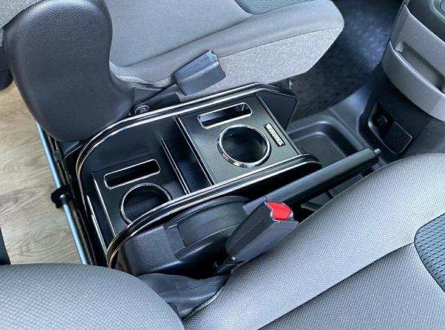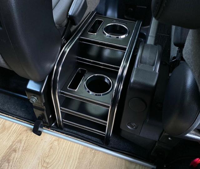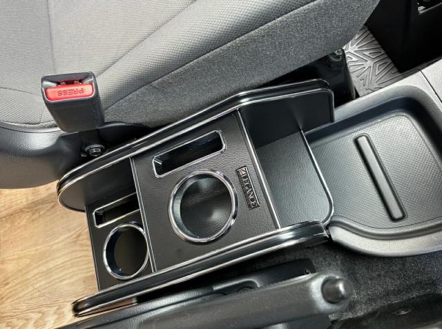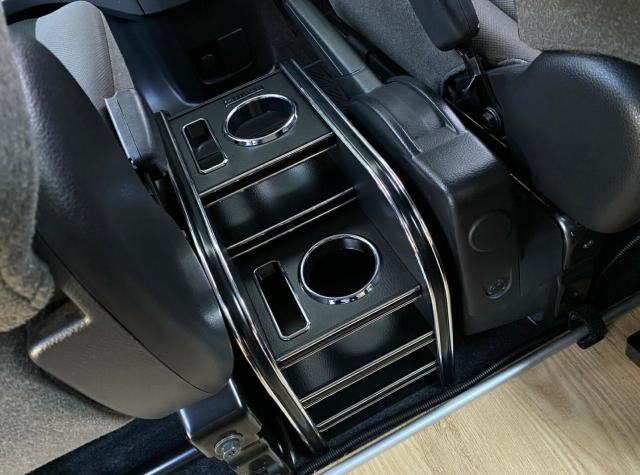 純正センターコンソールのトレイ部分はそのまま使えるようにしており、運転席から使い勝手の良い高さと、セカンドシートからも使えるように工夫しております。