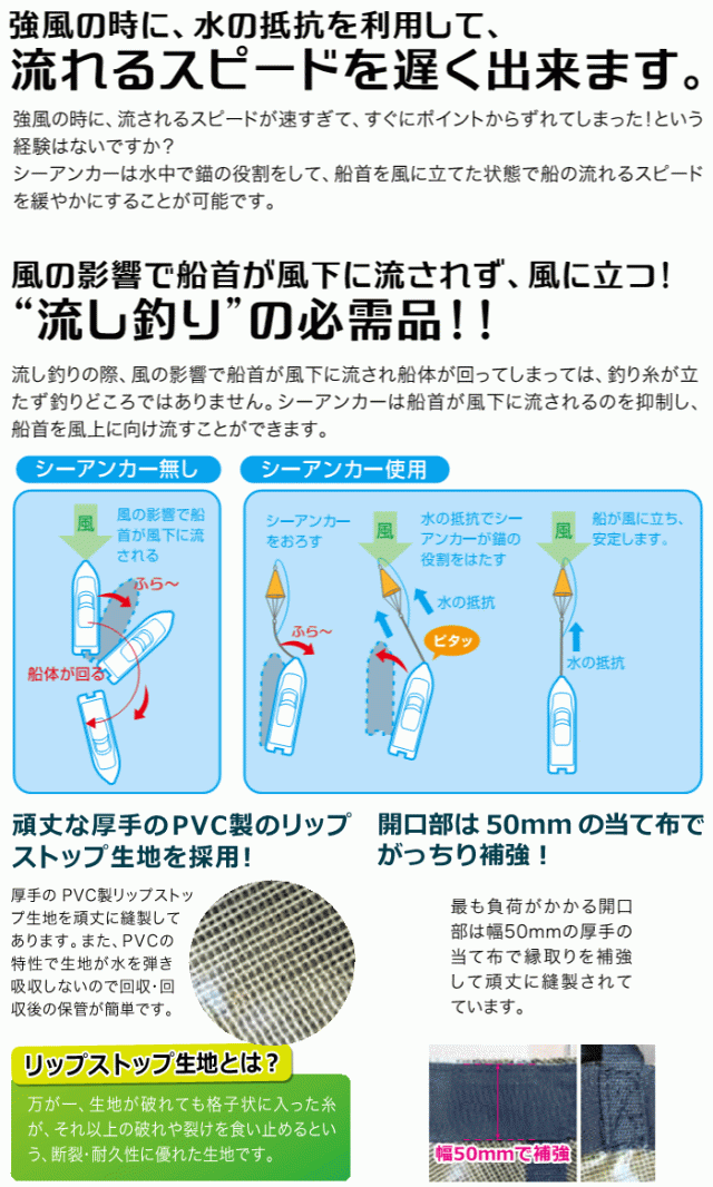 シーアンカー 23ft艇以下用 ボート 釣り 流し釣り 船舶用 流れ止め 海釣り 川釣り 河釣り ボート釣り