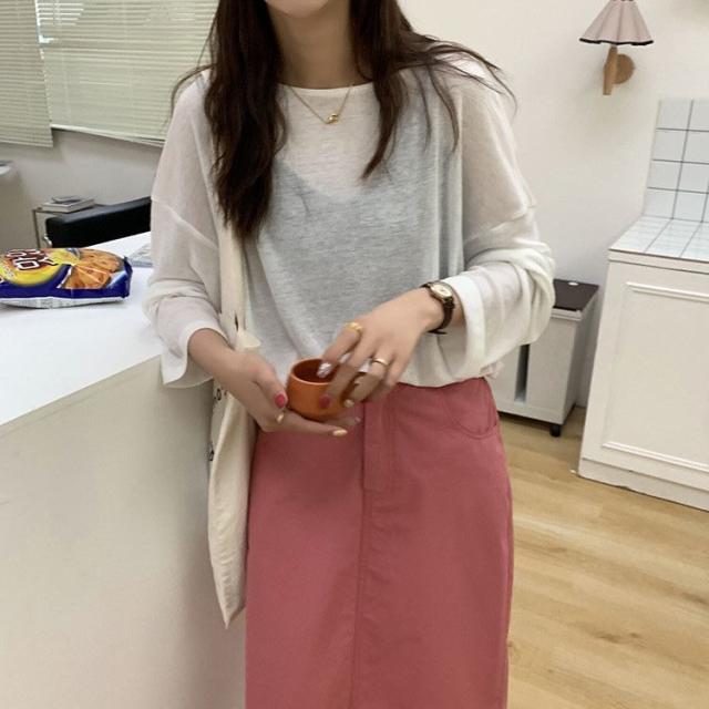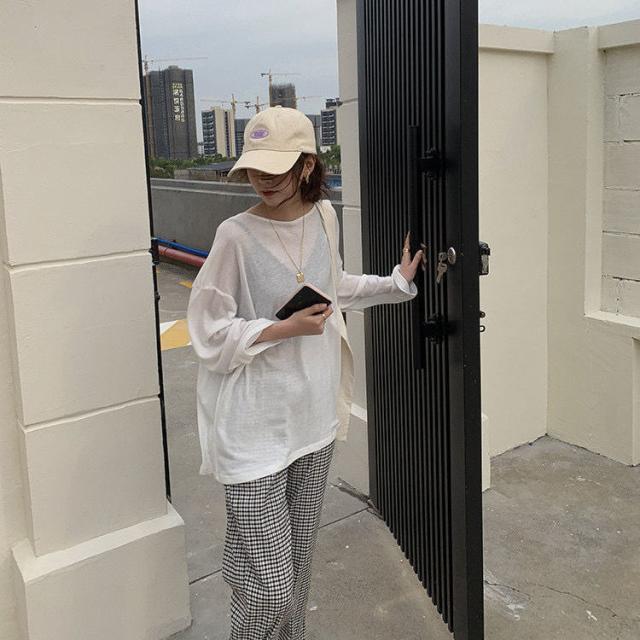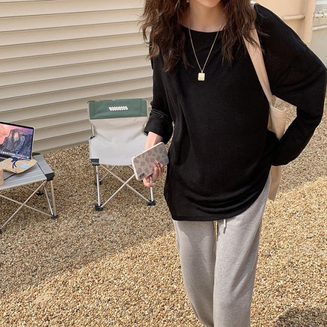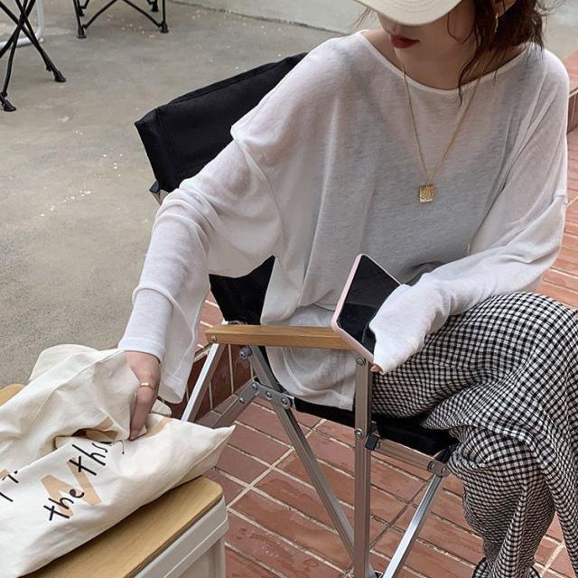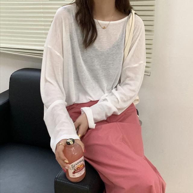 夏 冷感 tシャツ 長袖 重ね着 インナー 無地 クルーネック 体型カバー シアーロングスリーブTシャツ シースルー トップス UV 紫外線
