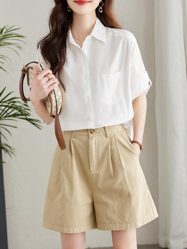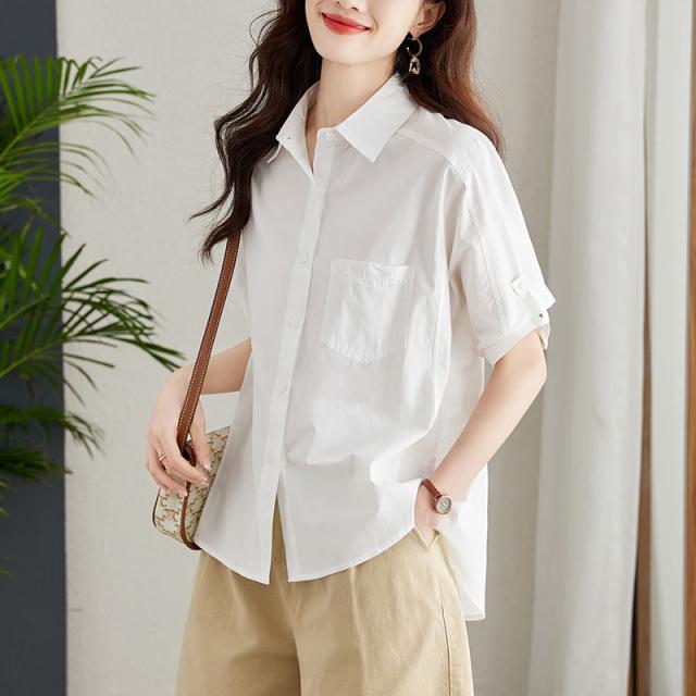 送料無料 シャツ レディース 白シャツ ブラウス チュニック トップス 半袖 大きいサイズ 無地 Tシャツ 涼しい オシャレ 前後差 フォーマル 白 通勤 フォーマル