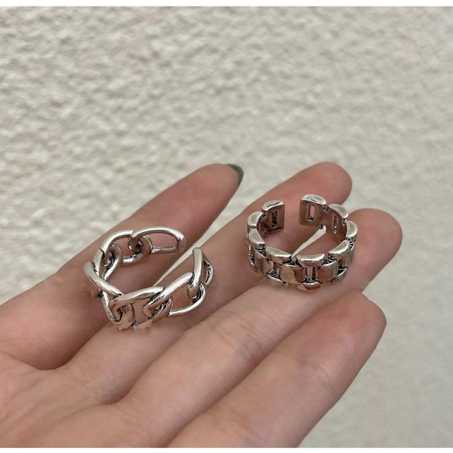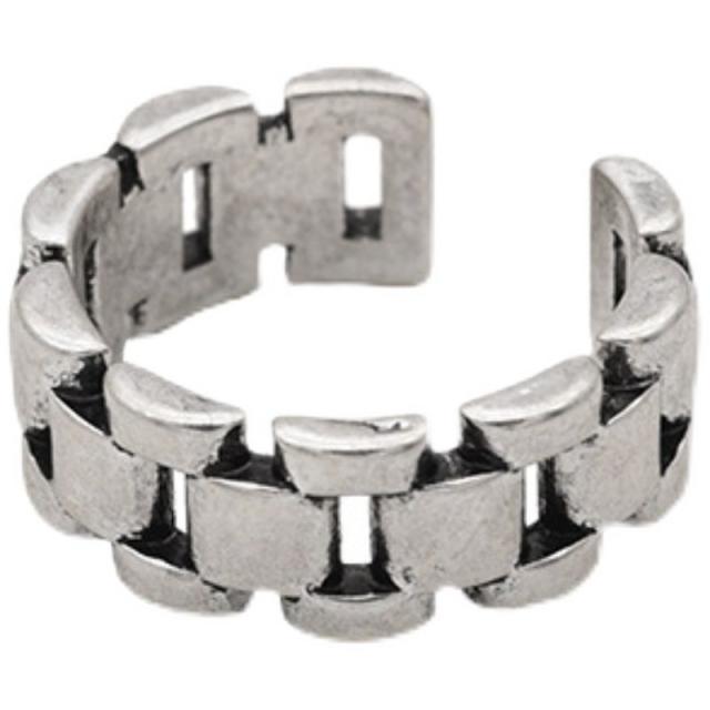 送料無料 ヴィンテージ リング 指輪 レディース 2点セット シルバー ブロックリング * アンカーチェーンリング オープン フリーサイズ アクセサリー 金属アレルギー 対応 韓国