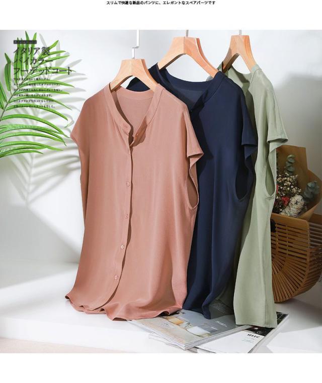 送料無料 シャツブラウス ゆるさが可愛い シャツ レディース ブラウス トップス 半袖 フレンチスリーブ 羽織り ノースリーブ 上品 大きいサイズ ゆったり 春 夏