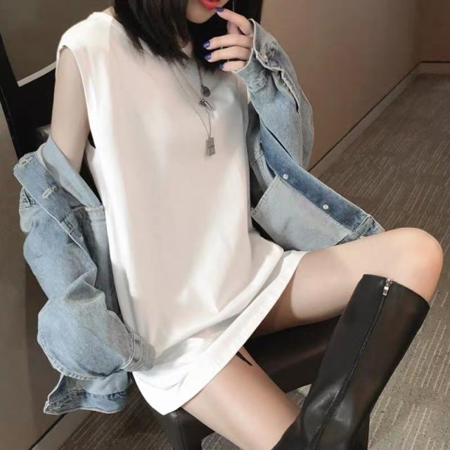 シンプルロングノースリーブ チュニック 二の腕カバー レディース カジュアル 大人 ホワイト チャコール ラウンドカット