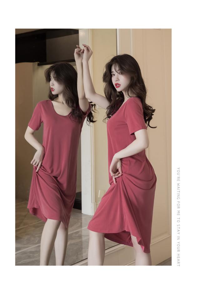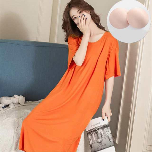 ブラなしでこれ1枚で着られる!カップ付き ワンピース 半袖 ルームウェア ワンピース さらさら パジャマ 部屋着 胸パッドワンピース