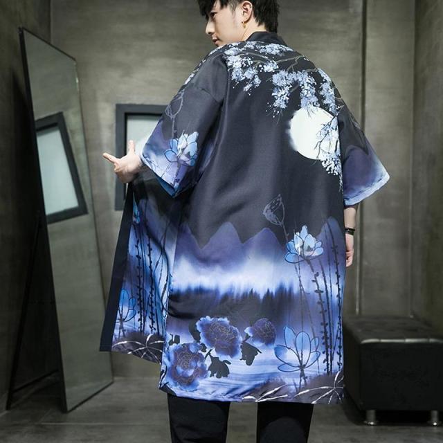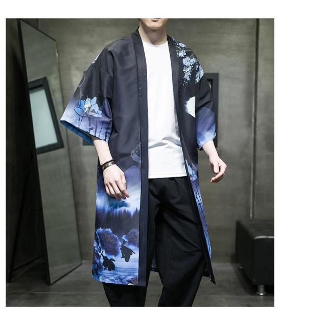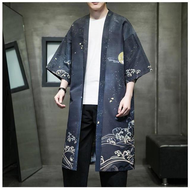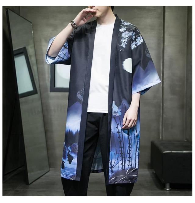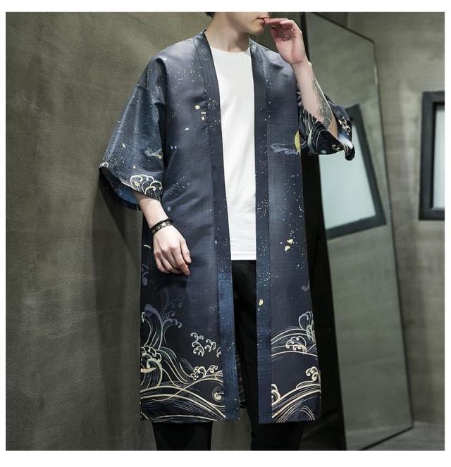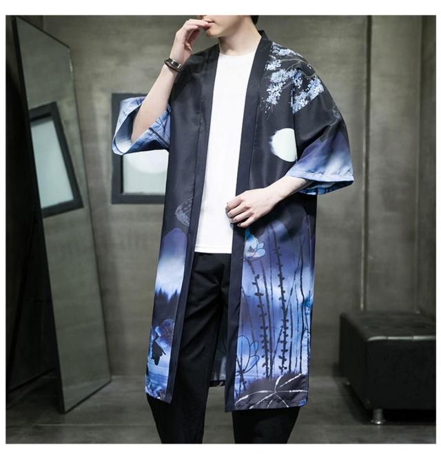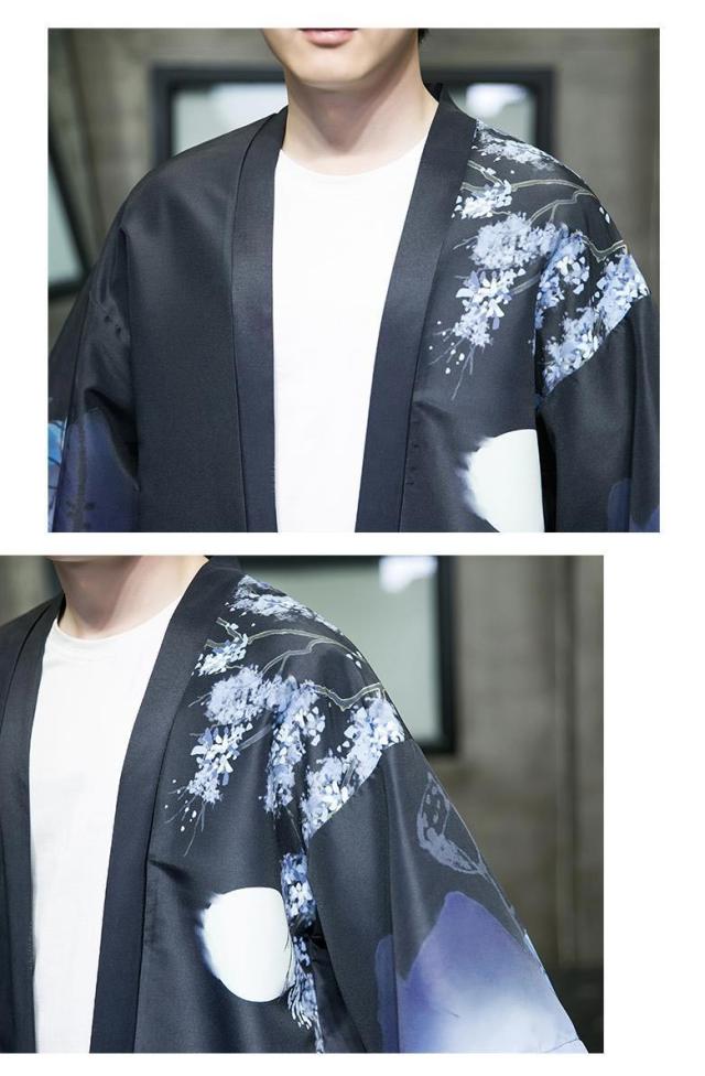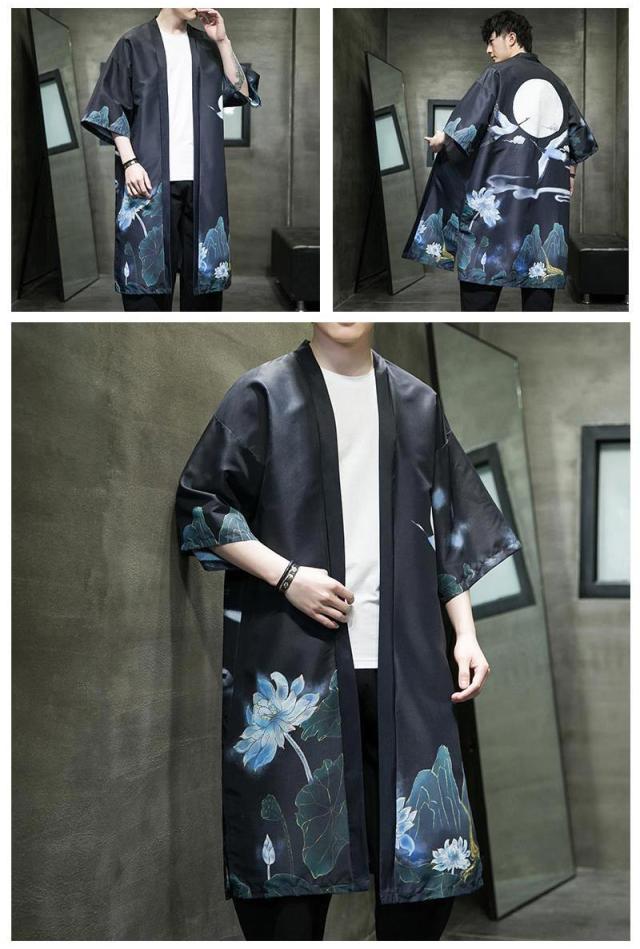 送料無料 甚平 浴衣 メンズ 鶴柄 和柄 ロング丈 薄手 涼しい ゆったり 開襟 羽織 和服風 花火大会 部屋着 ルームウェア 春夏物