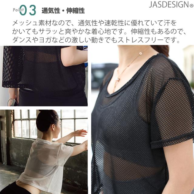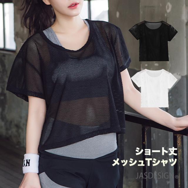 メッシュ 半袖 Tシャツ レディース ショート丈 シースルー 透け感 かわいい ジム ヨガ ウエア ダンス スポーツウェア おしゃれ ヨガウェア トップス へそ出し 重ね着 セクシー エアロビクス ズンバ ホットヨガ フィットネスウェア ヒップホップ 通気性 速乾 送料無料 JM-285