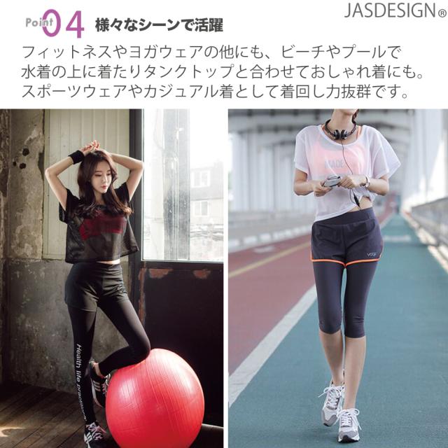 フィットネスやヨガウェアの他にも、ビーチやプールで水着の上に着たりタンクトップと合わせておしゃれ着としてもお使いいただけます。