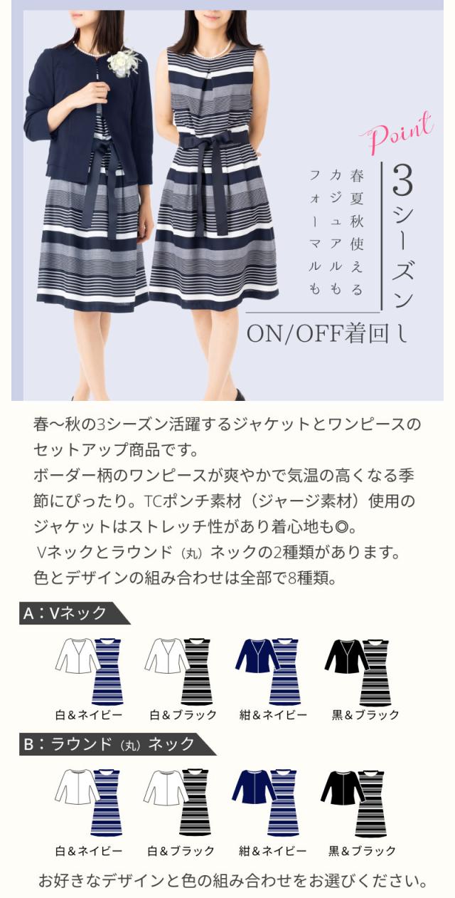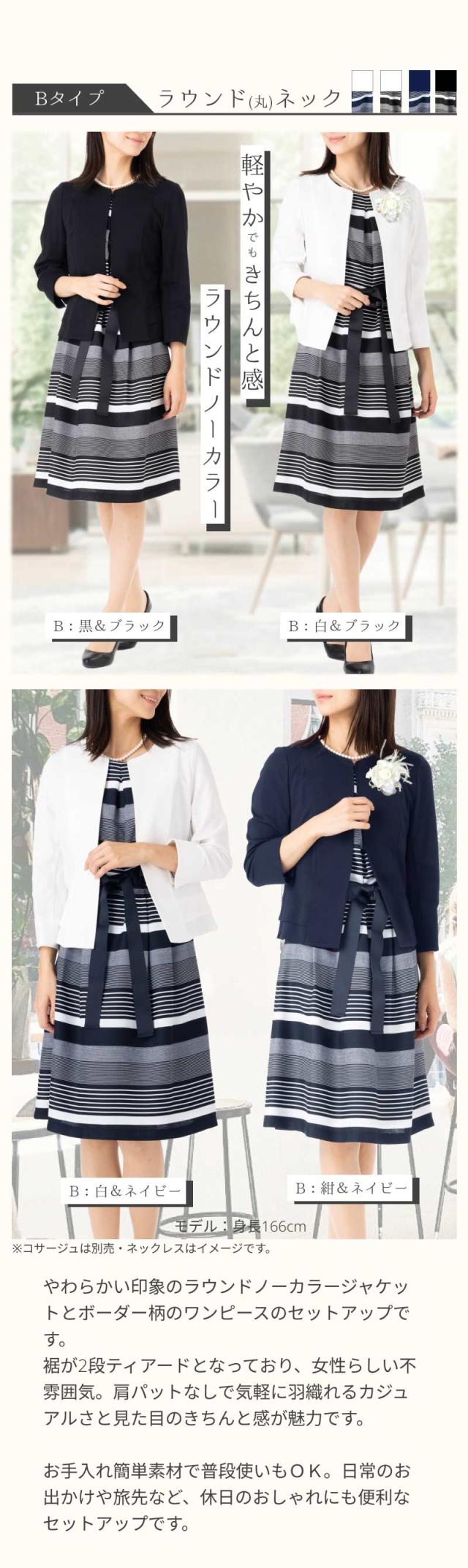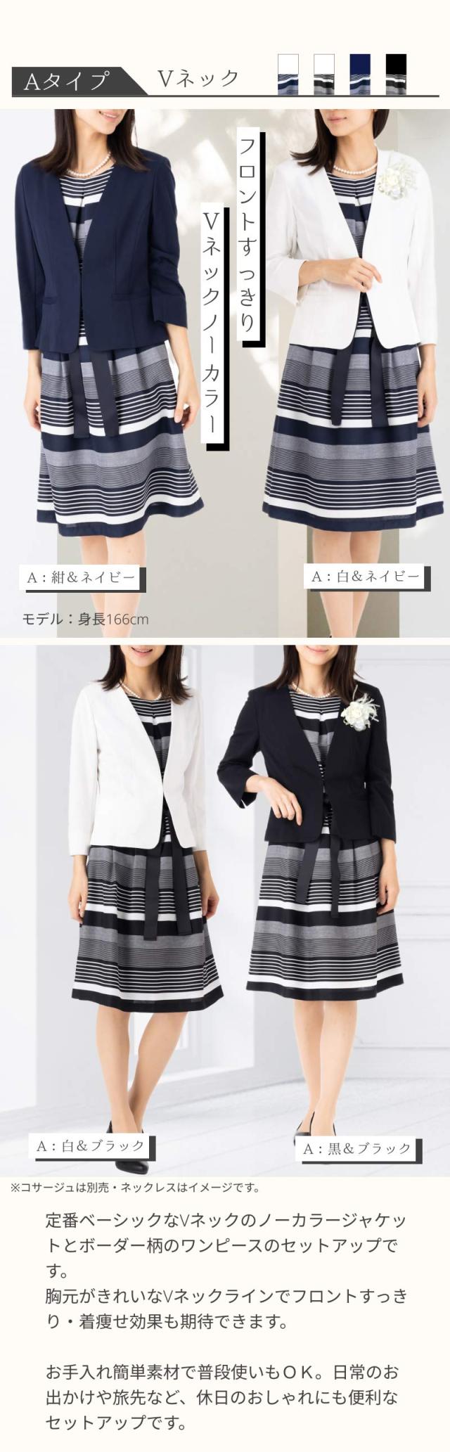 ■ノーカラージャケットのタイプとワンピースの組み合わせを、下記の8パターンよりお選びください。