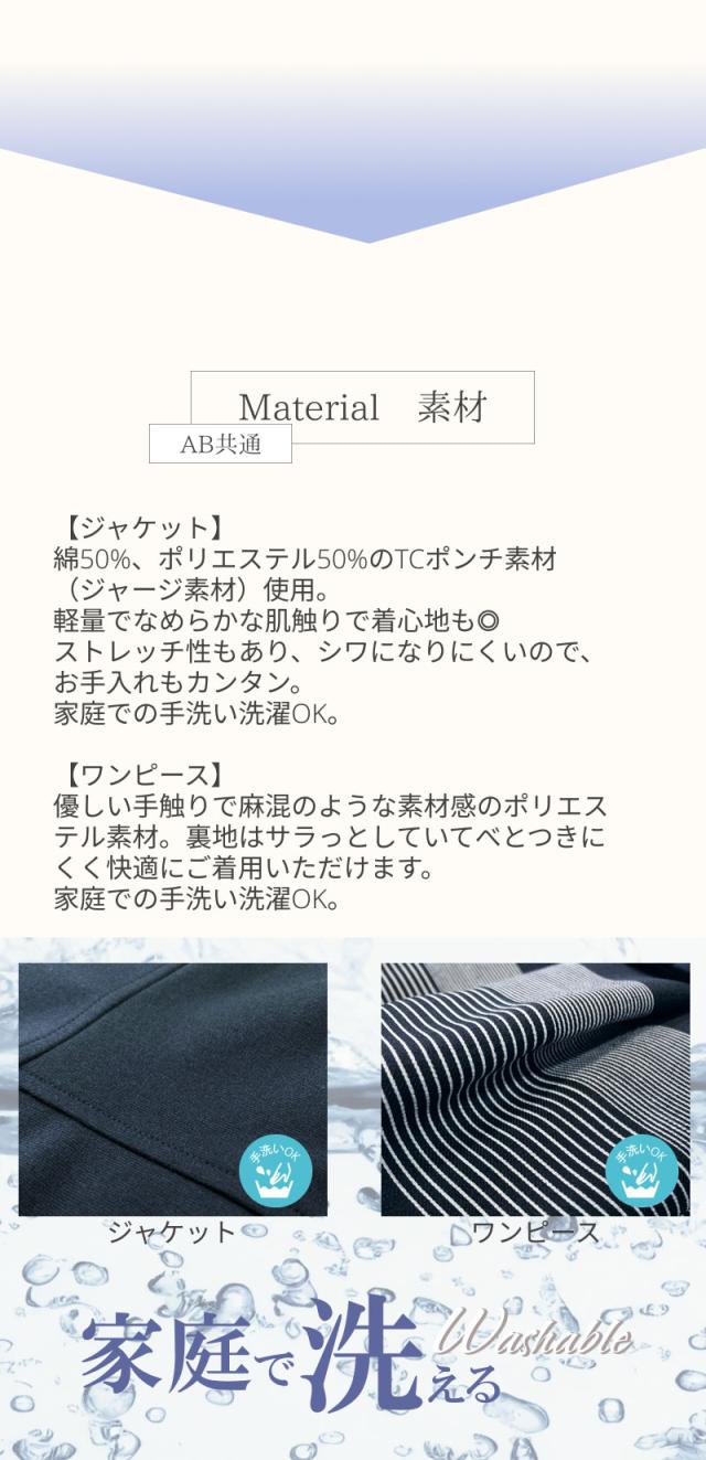 【ジャケット】 綿50%、ポリエステル50% 【ワンピース】 表地:ポリエステル100% 裏地:ポリエステル100% |