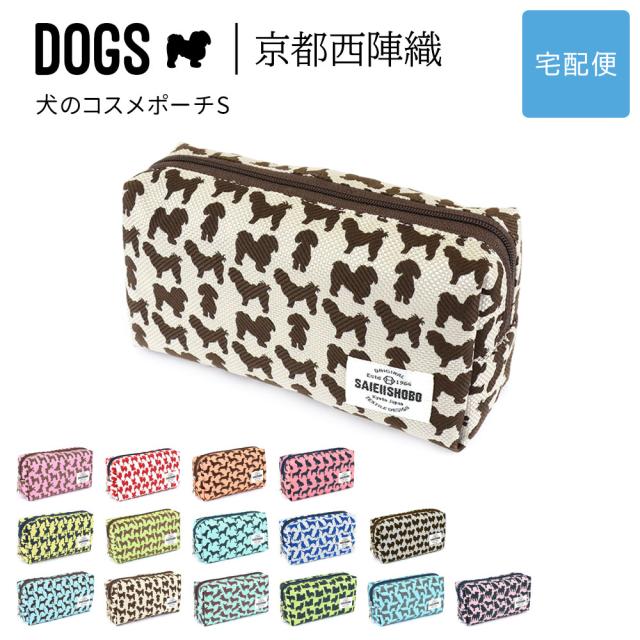 犬のコスメポーチ Sサイズ 小物入れ DOGS 西陣織 日本製 犬柄 生地 撥水加工 ジャガード レディース SAIEIISHOBO 西栄【宅配便専用商品】ファスナーポーチ マルチポーチ スクエア型 文具ケース 犬グッズ 犬好き ピンク/レッド/オレンジ/イエロー/グリーン/ブルー 25033027
