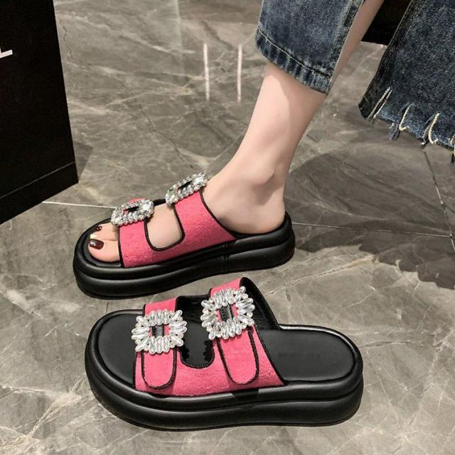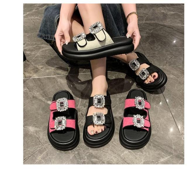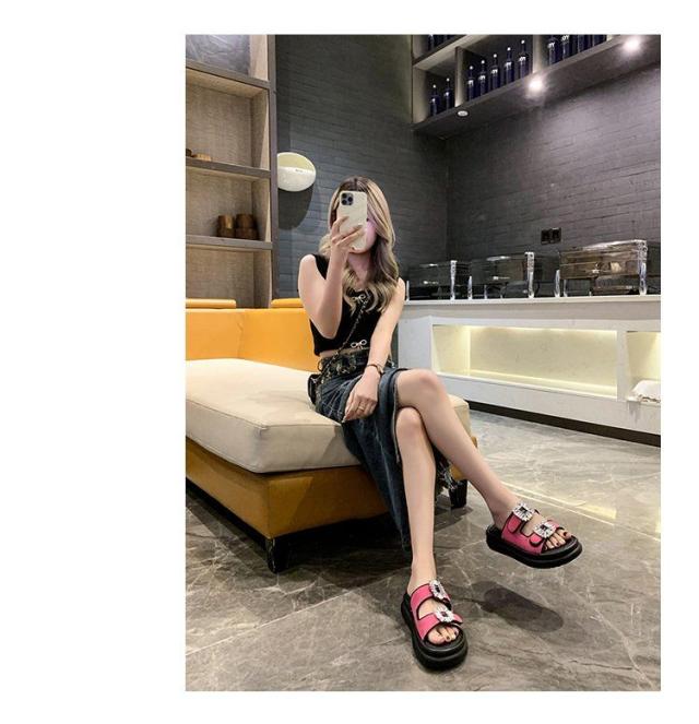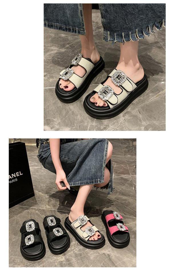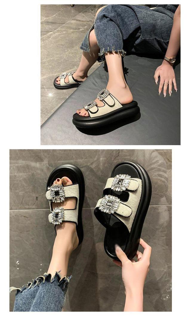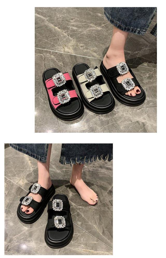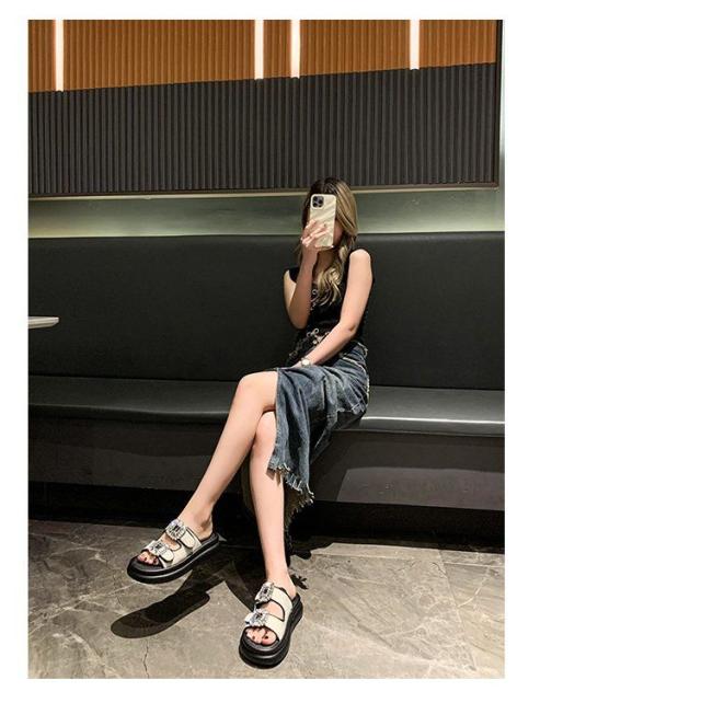厚底 ビジュー ダブルベルト サンダル 靴 フラット PU フェイクレザー 楽ちん 美脚 スポーツサンダル きれいめ カジュアル ガーリー お洒落