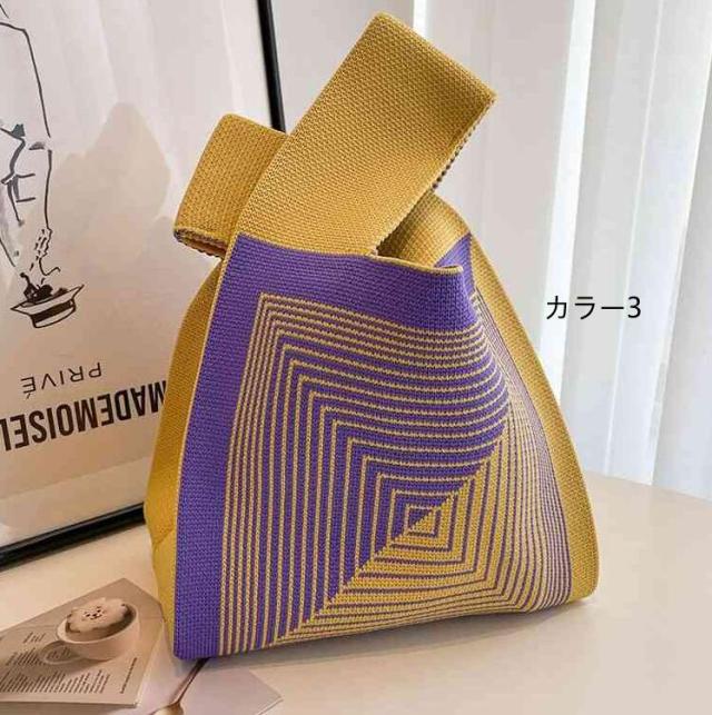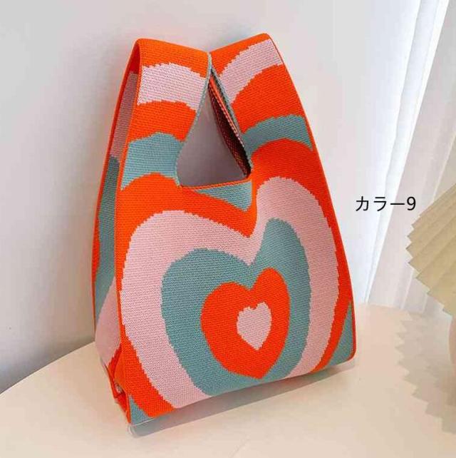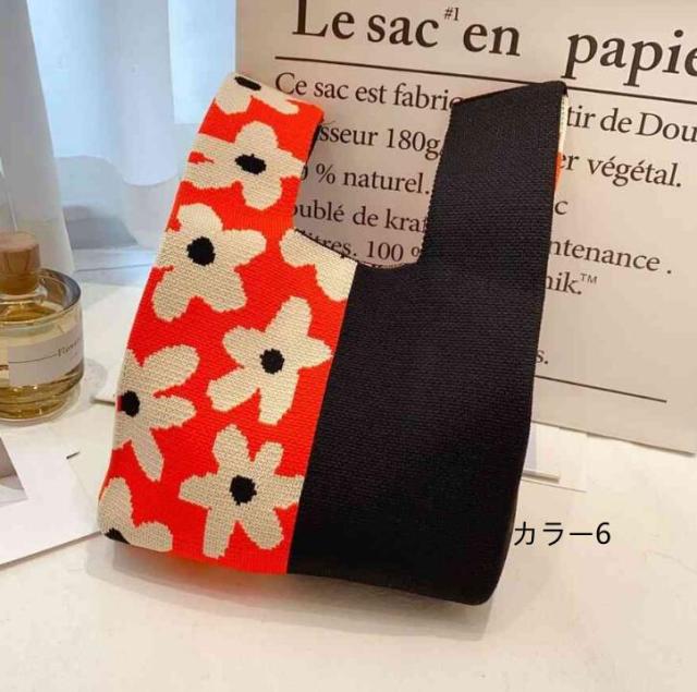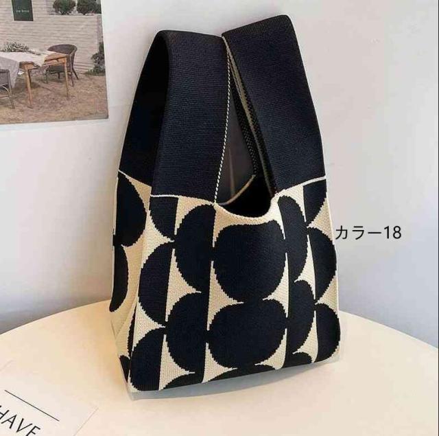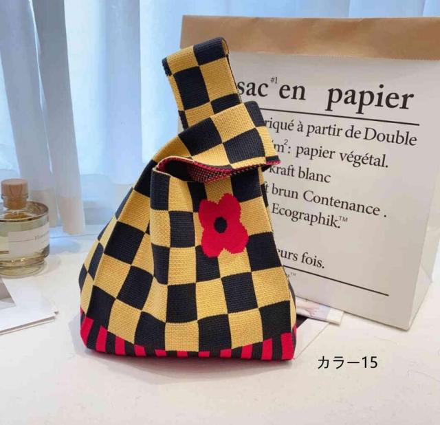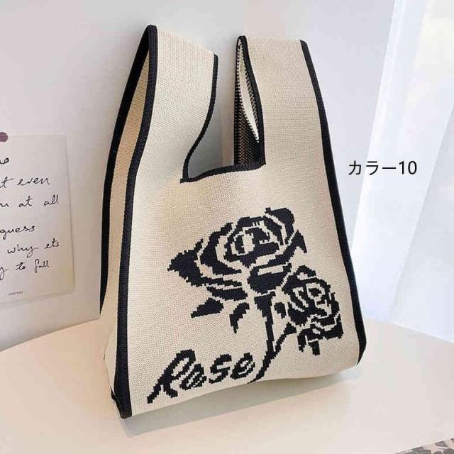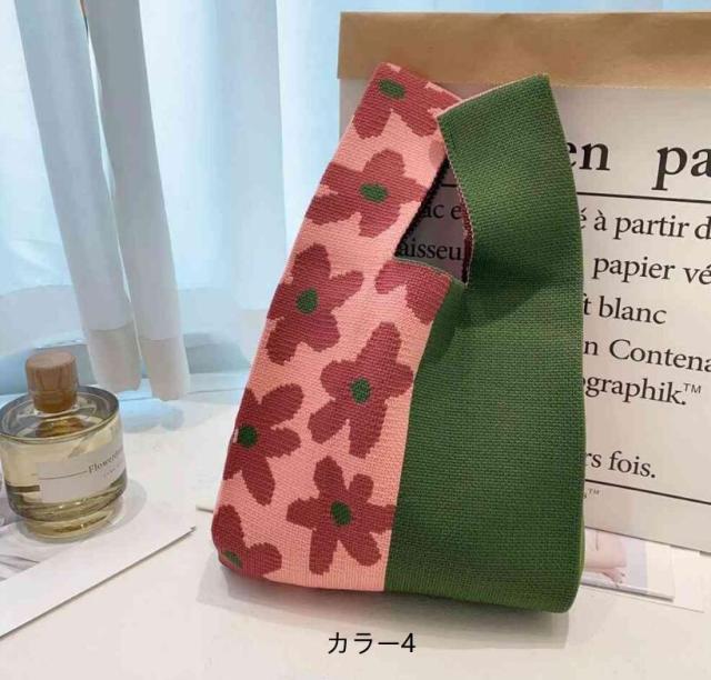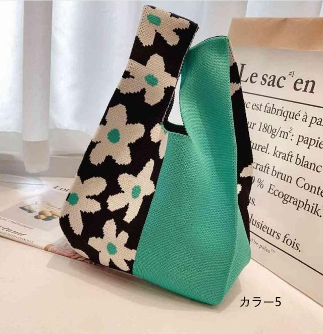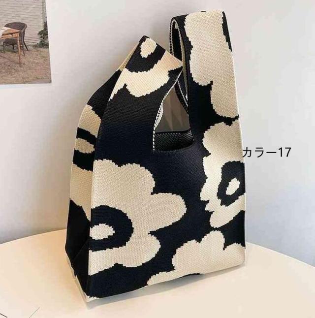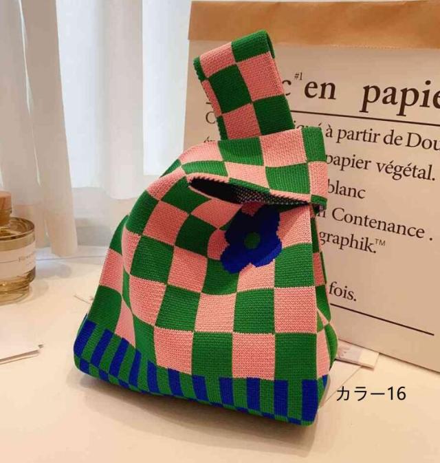 送料無料 ニット トートバッグ クロシェ編み かぎ針 ハンドバッグ 小さめ ミニ トート ニット ミニバッグ サブバッグ ストライプ チェック フラワー エコバッグ