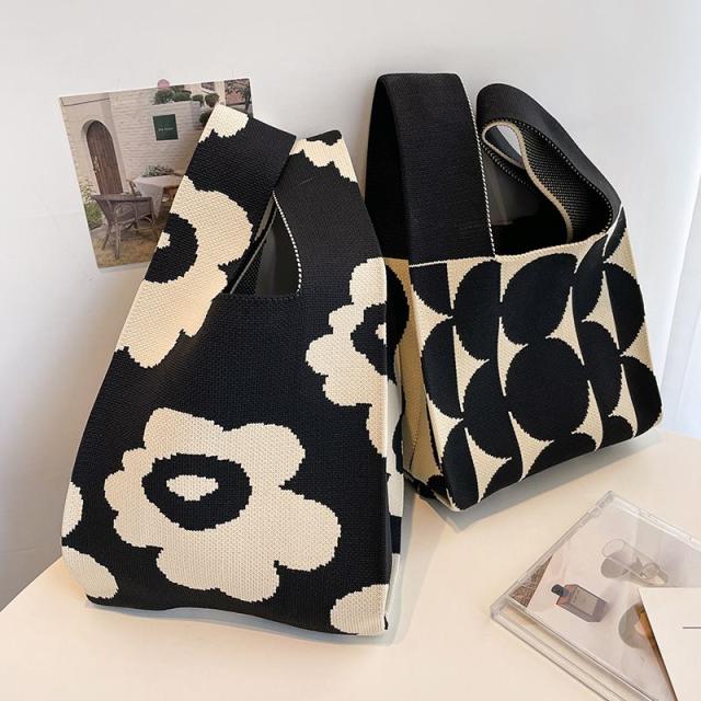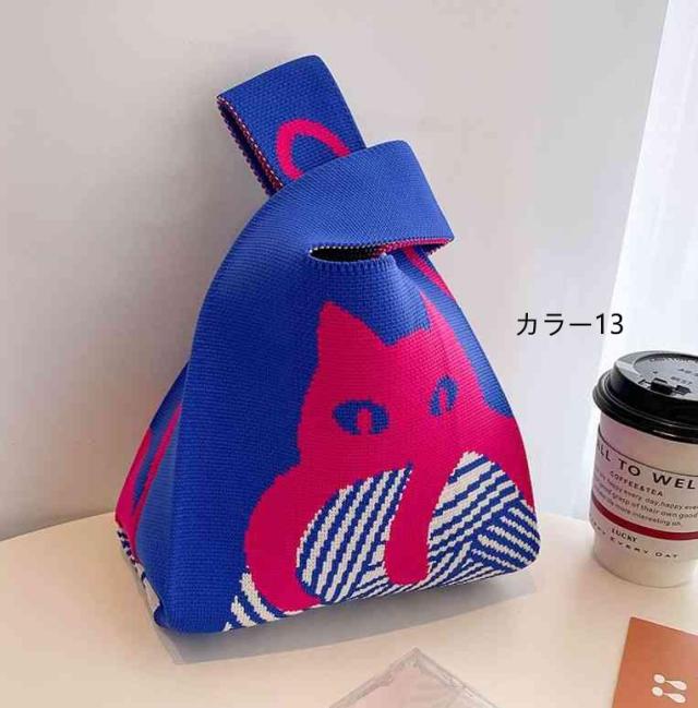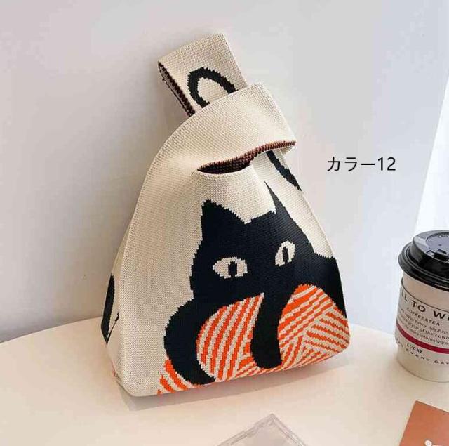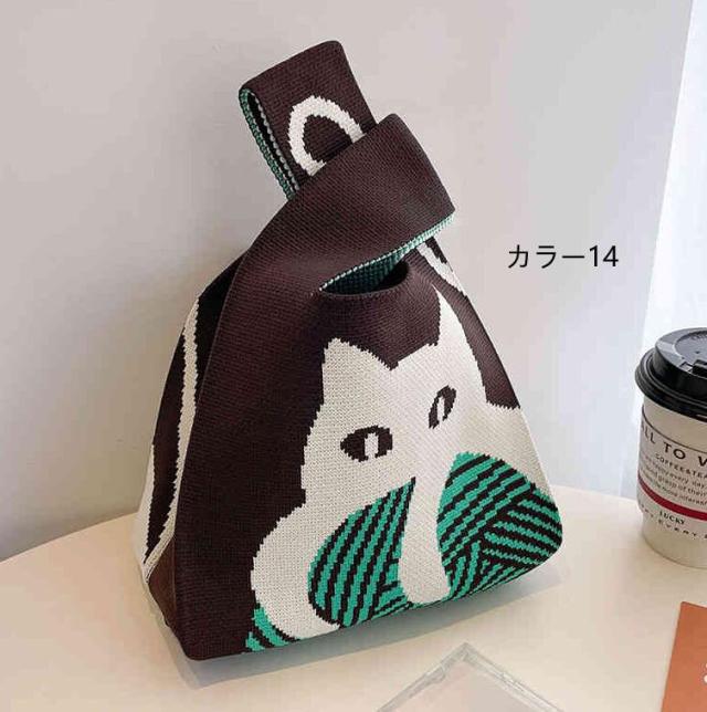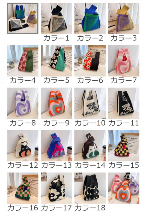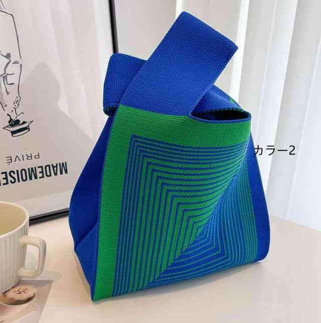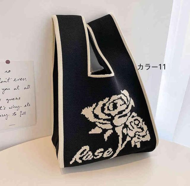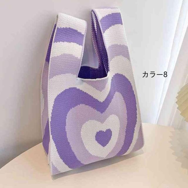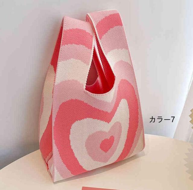送料無料 ニット トートバッグ クロシェ編み かぎ針 ハンドバッグ 小さめ ミニ トート ニット ミニバッグ サブバッグ ストライプ チェック フラワー エコバッグ