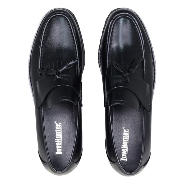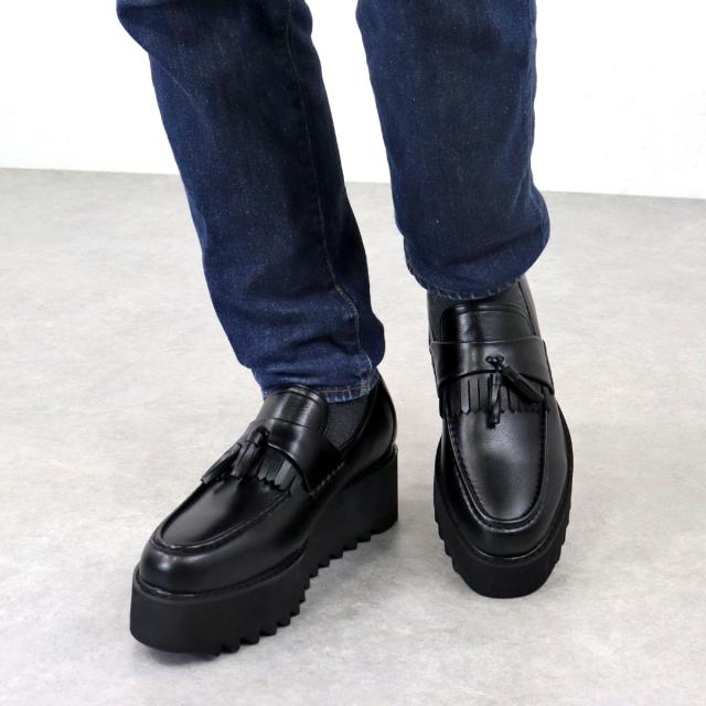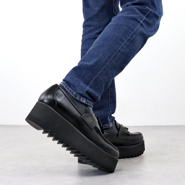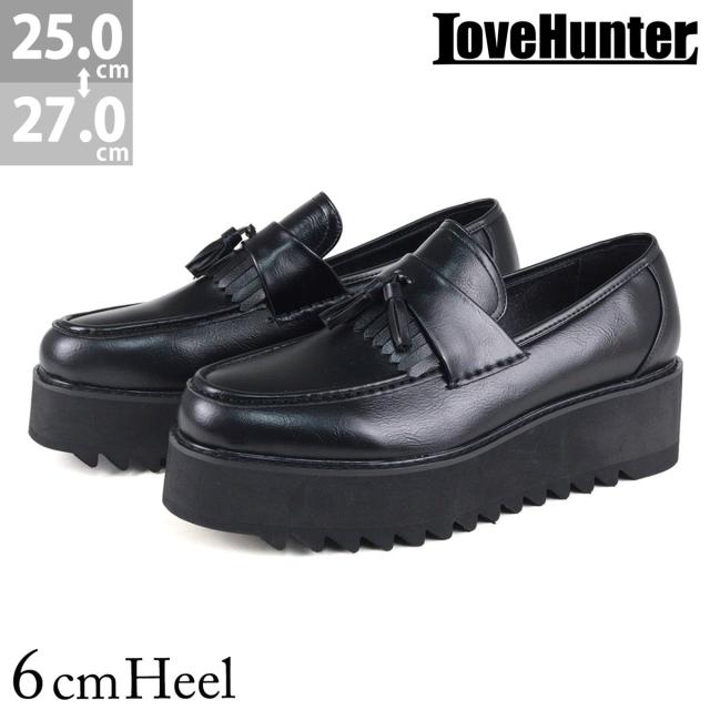 ローファー メンズ 厚底 6.0cmヒール シャークソール 滑りにくい 身長アップ No.1737 25.0-27.0cm 黒 ブラック LOVEHUNTER ラブハンター