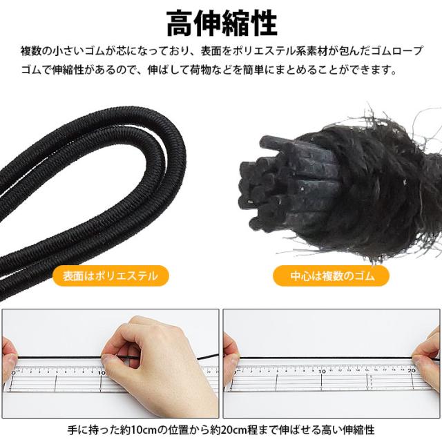 アウトドアなどで荷物をまとめたり様々なシーンで使用できるゴムロープ