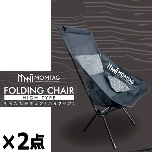 キャンプ アウトドア MOMTAG[モンタグ]ハイバックタイプ折りたたみチェア[2点] バーベキュー 夏休み (収納ケース ヘッドレスト サイドメッシュ 簡単組立)