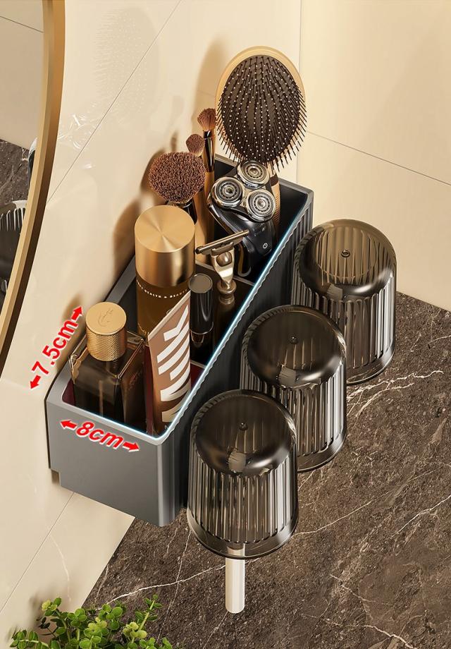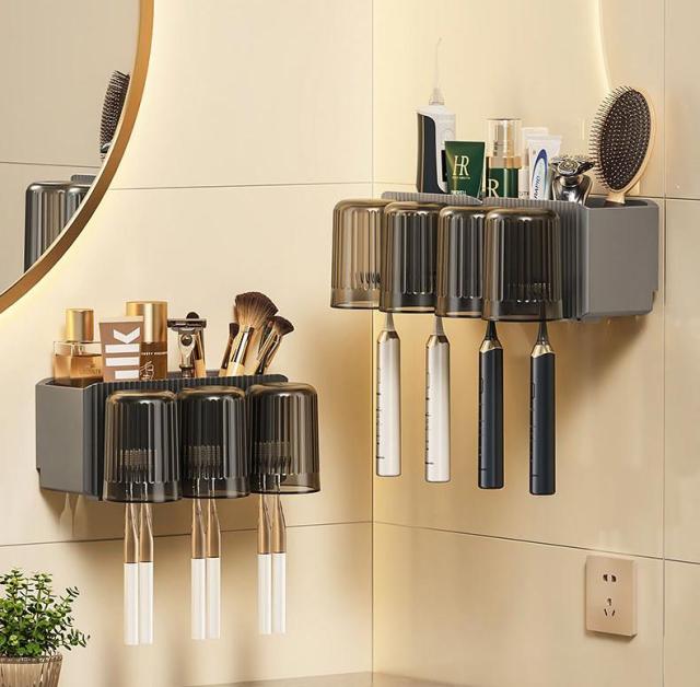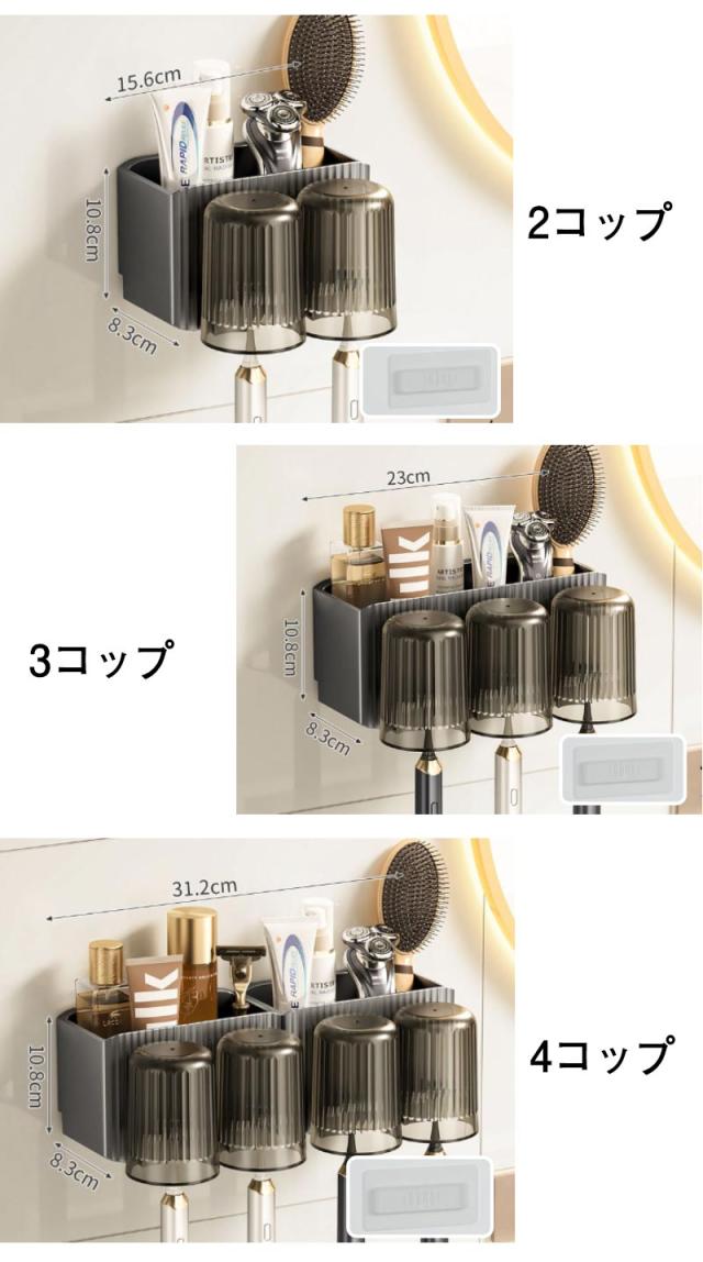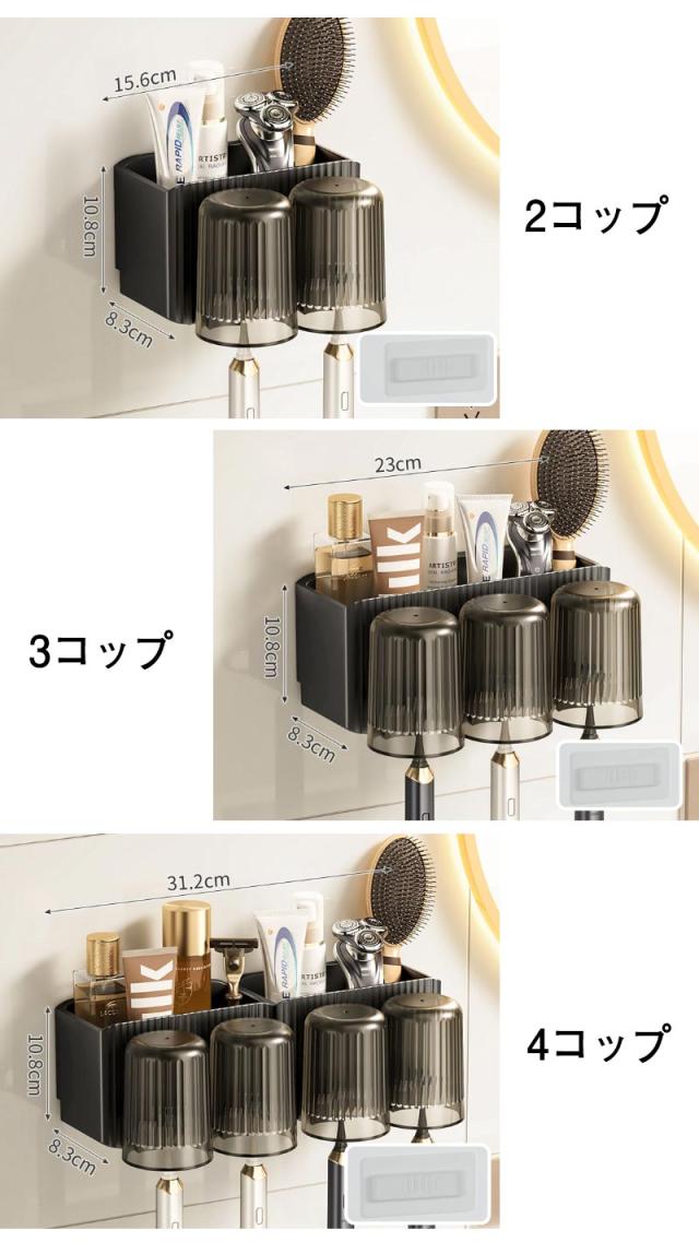 送料無料 歯ブラシスタンド 歯ブラシホルダー 歯磨きコップ コップスタンド 壁掛け 粘着式 ブラシホルダー お風呂/洗面台/浴室用 多機能収納ケース コップ付き