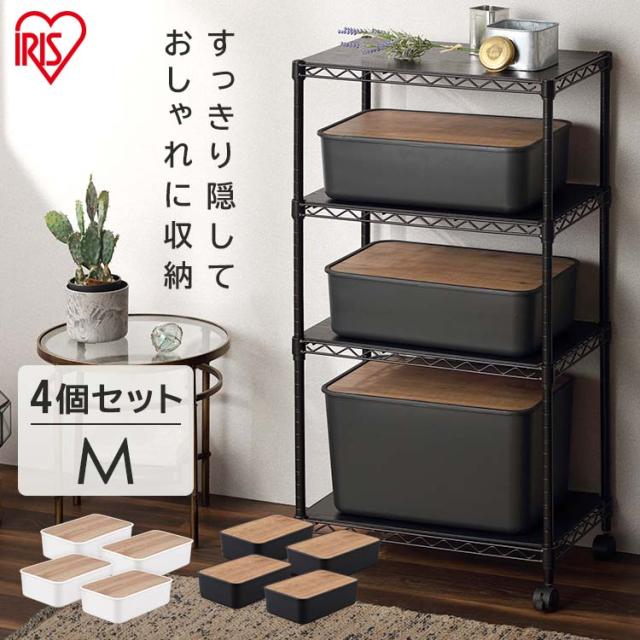 木目調デザインのフタがアクセントにシンプルで使いやすい収納ケース。