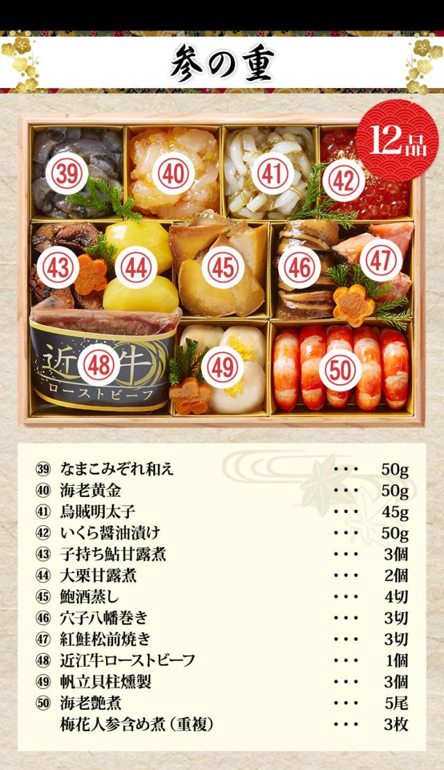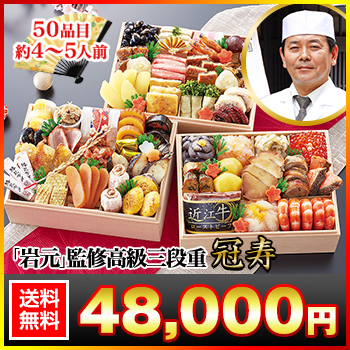 長方形三段和風おせち 【50品目・4〜5人前】 京都祇園 料亭「岩元」監修高級重 冠寿 【送料無料】 冷蔵おせち 冷蔵 おせち お節 御節