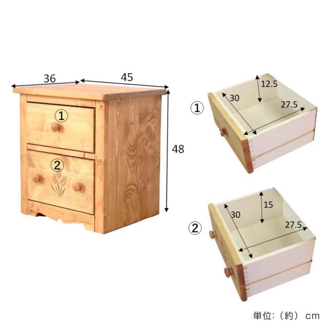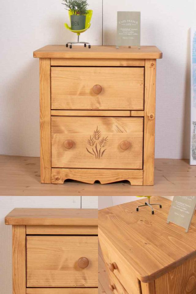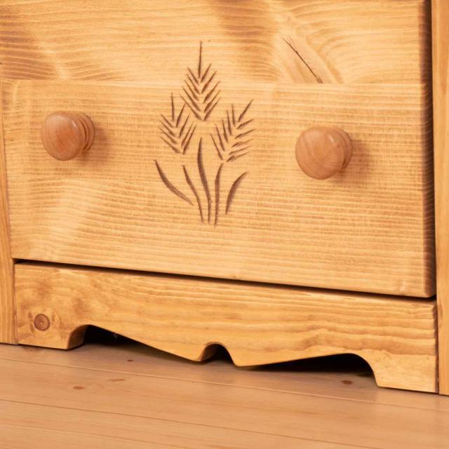 下段の引出しには穂をイメージしたカントリー調の彫刻があしらわれています。