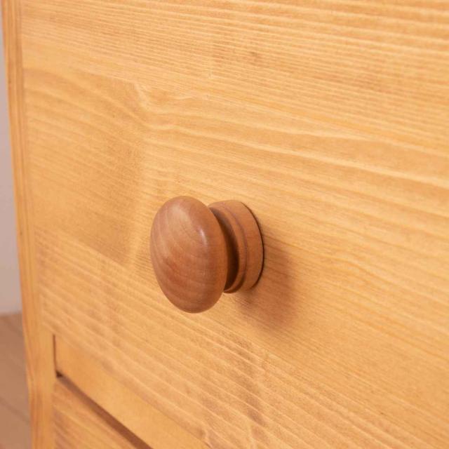 引出しには無垢材を削りだした木製の可愛い取っ手が付いています。