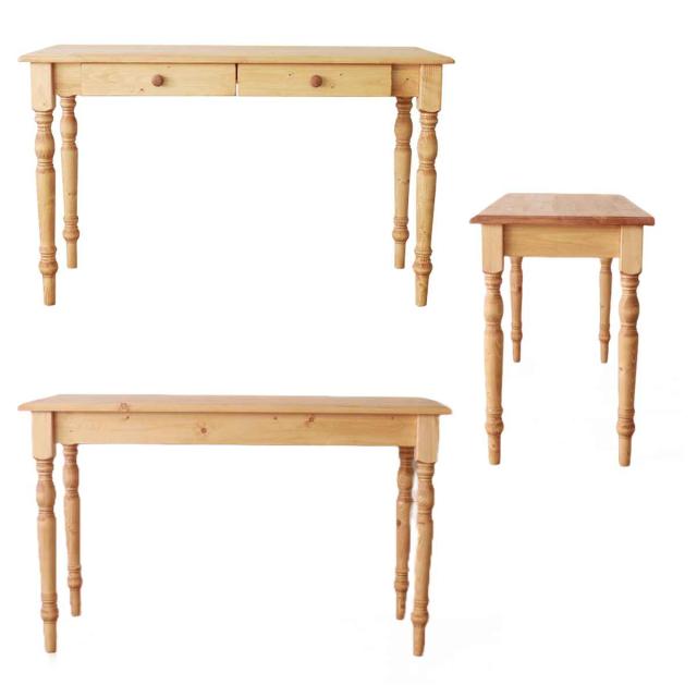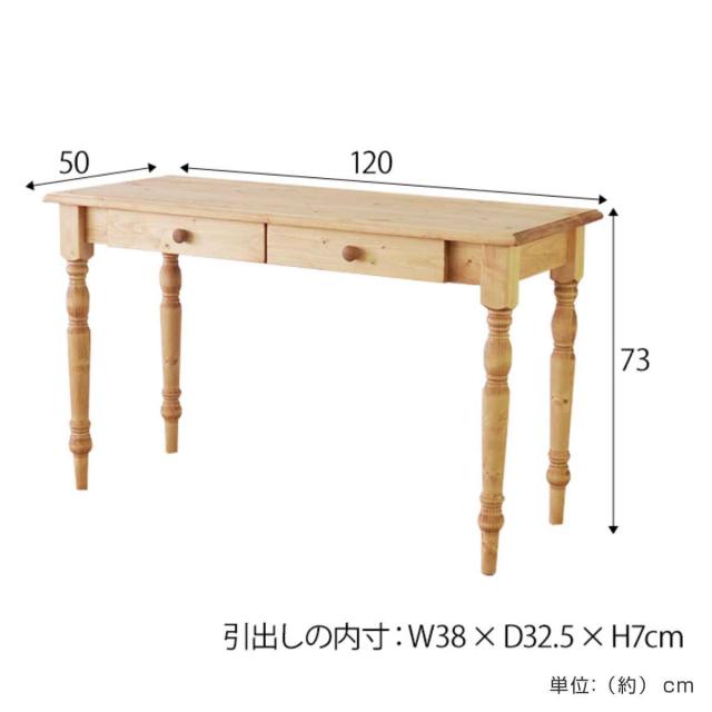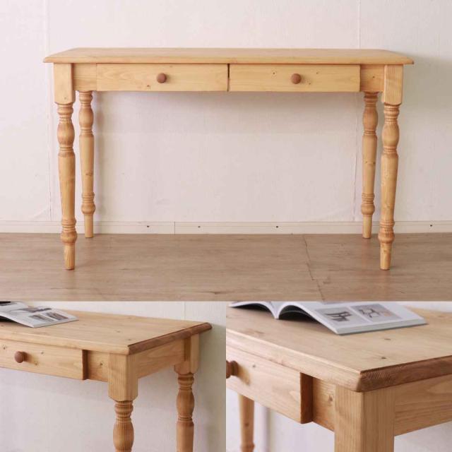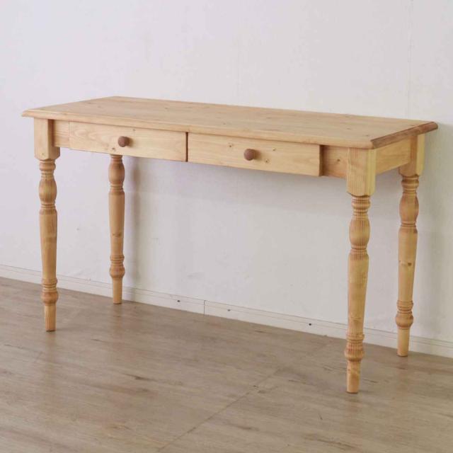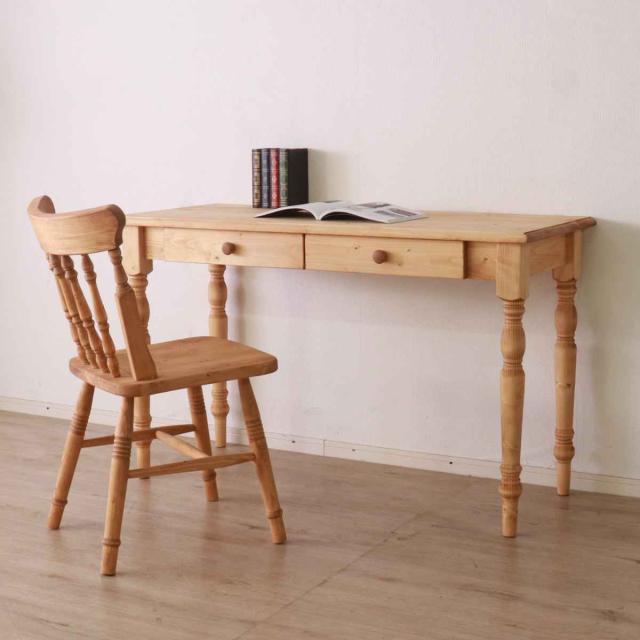 ワークデスク 引き出し付き 幅120cm 天然木 カントリー調 ( デスク リビング 机 引き出し 収納 北欧 木製 パイン材 パイン 無垢 北欧風 ナチュラル 木目調 )
