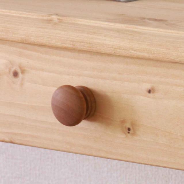 引出しには無垢材を削りだした木製の可愛い取っ手が付いています。