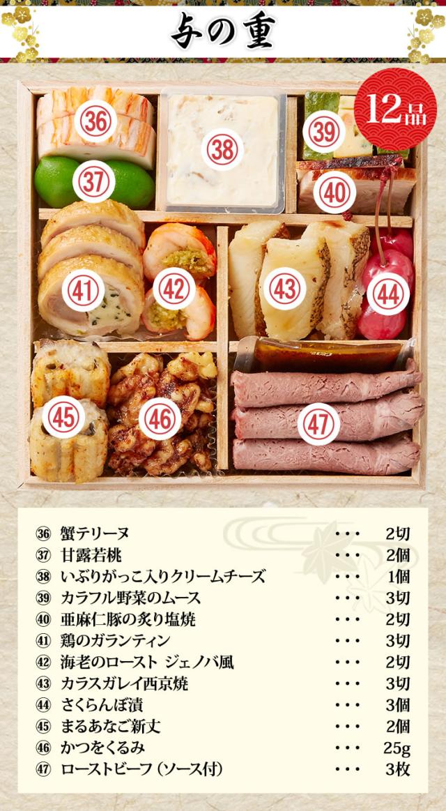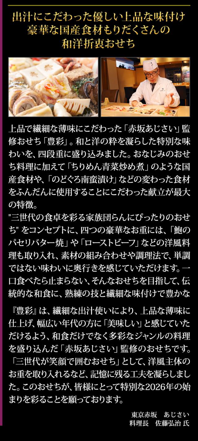 5.5寸四段おせち 【47品目・4〜5人前】 赤坂「あじさい」監修 与段重 豊彩 【送料無料】 冷蔵おせち 冷蔵 おせち お節 御節