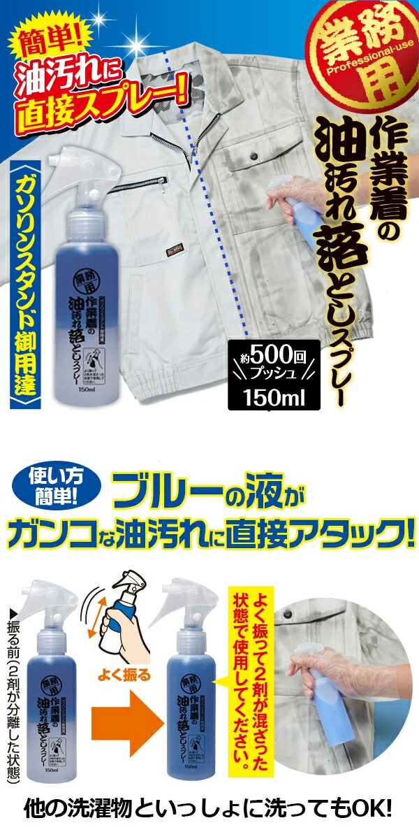 アイメディア 作業着の油汚れ落としスプレー150ml プロ仕様 洗濯 頑固な汚れ