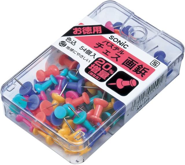 【在庫処分特価】【メール便発送】ソニック 画鋲 パステルチェス画鋲 色込 54個入 AW-316