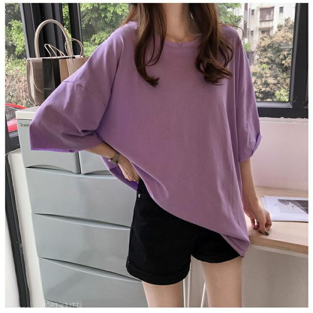 PARASUGAR くすみカラー ラベンダー シンプル Tシャツ レディース トップス 半袖 ゆるカジ オーバーサイズ