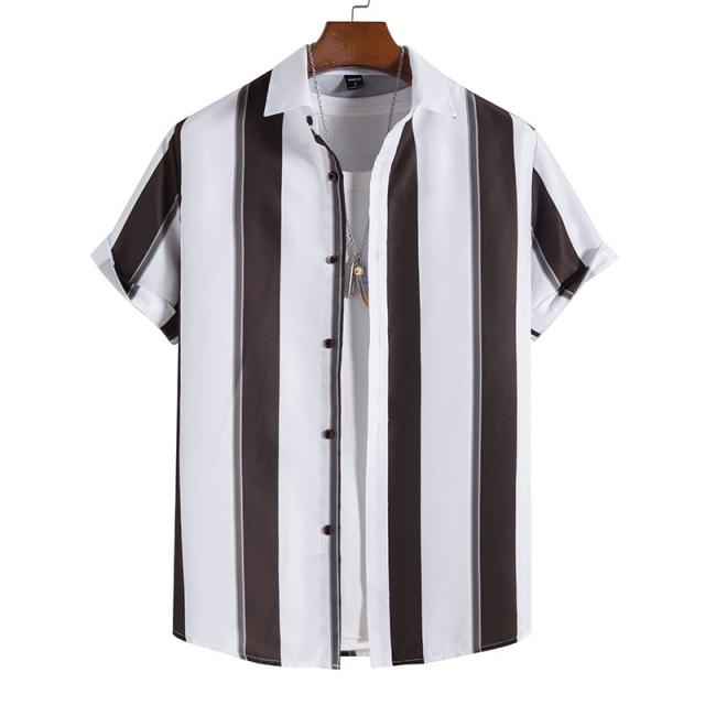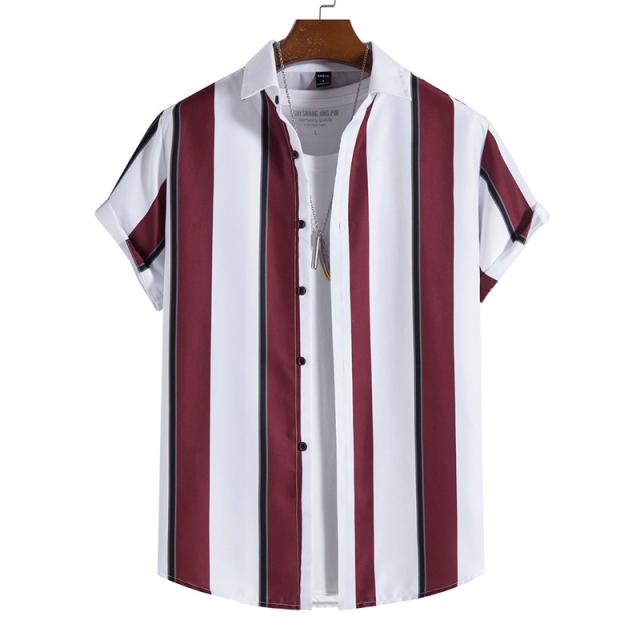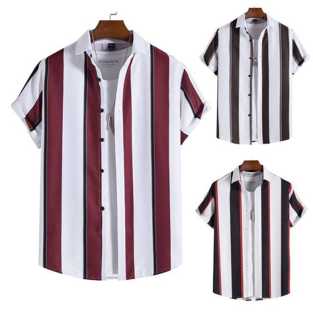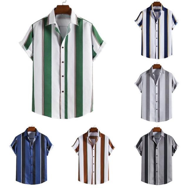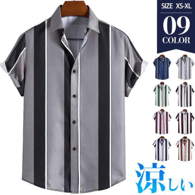 シャツ メンズ アロハシャツ カジュアルシャツ ストライプ 半袖 ボタンダウン 開襟 トップス ゆったり 薄手 着痩せ ビーチ リ
