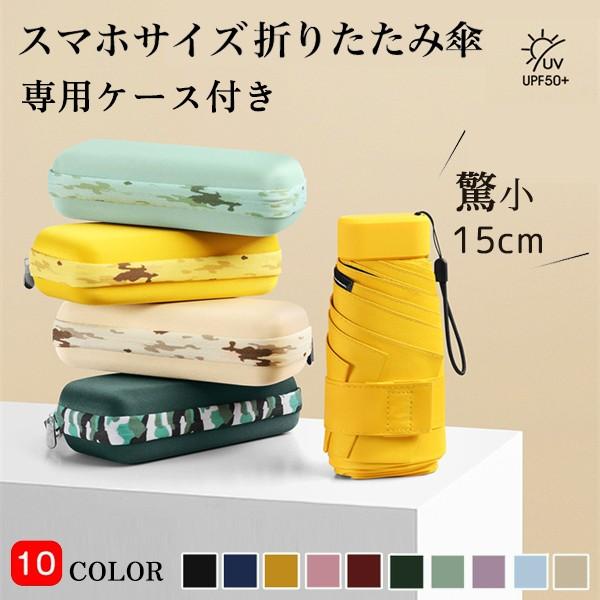 【レビュー投稿で+5%還元】全10色 スマホサイズの折りたたみ傘 ポケットサイズ ケース付 UPF50+ 持ちやすい かわいい 持ち運び 小さい 日傘 晴雨兼用傘 完全遮光 折りたたみ傘 折り畳み傘 コンパクト 15cm 軽量 傘 晴雨兼用 折り畳み 軽量傘 レディース 遮光 遮熱