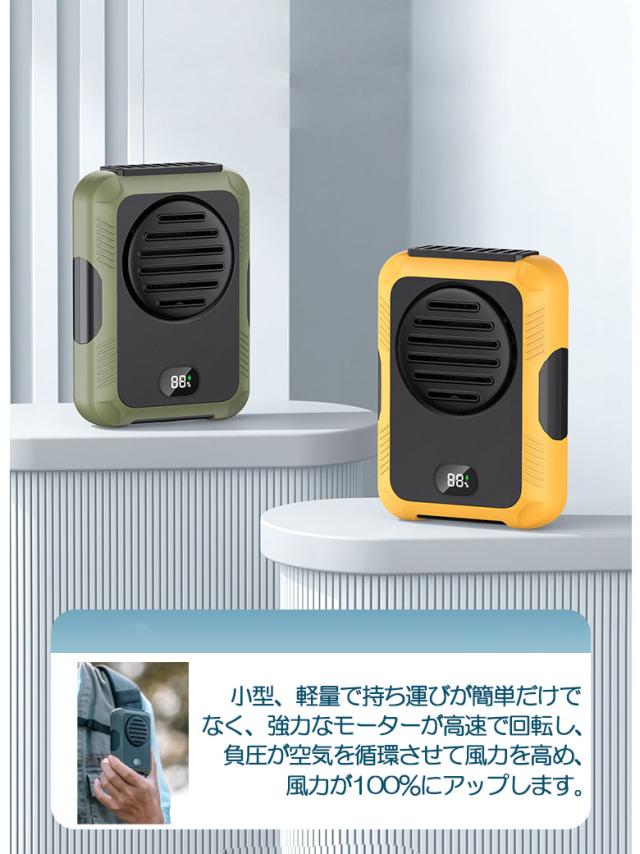 【製品仕様】 腰掛けファンの電池容量:2000mAh材質:ABS 電圧:DC5.0V/1.0A パワー:?5W