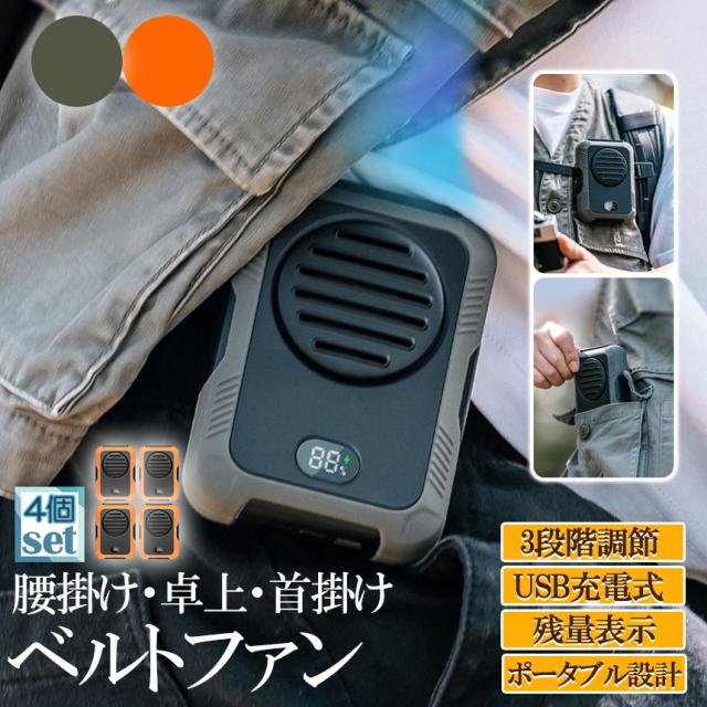 扇風機 腰掛けファン 首掛けファン ポータブル扇風機 4個セット 卓上 小型 ベルトファン 腰掛け扇風機 携帯扇風機 三段階風量 LED残電表示 強力 静音 耐衝撃 usb充電式 通勤通学 スポーツ 熱中症対策 省エネ